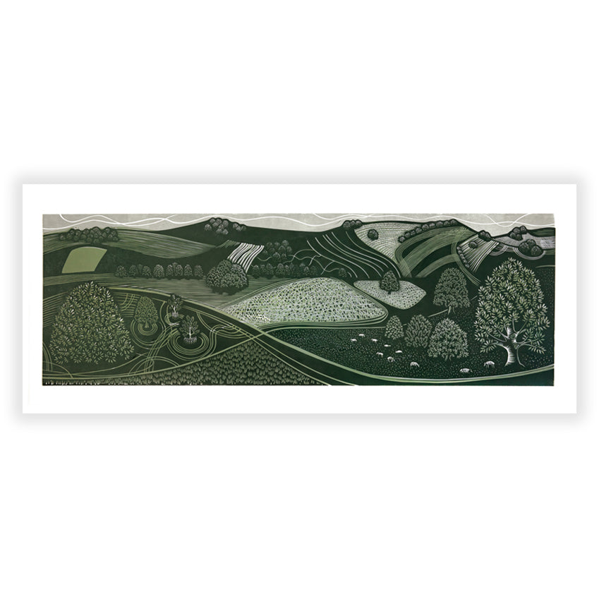 An original linocut print created by Sarah Kirby exclusively for A Printmaker's Landscape at Yorkshire Sculpture Park, –